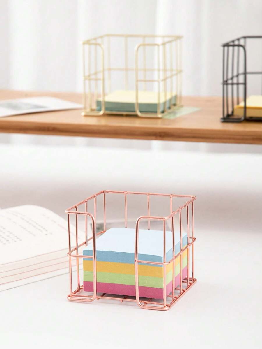 1/2pcs Modern Sticky Note Holder, Note Box + Business Card Holder Set, Metal Wire Desktop Sticky Note Holder, Rose Gold Note Holder, Cute Note Cube Stand, Dispenser, Office Desktop Organizer, Mesh Note Holder, Ballpoint Pen, Desktop Sticky Note Holder, For Home Office, School Desk Back To School
