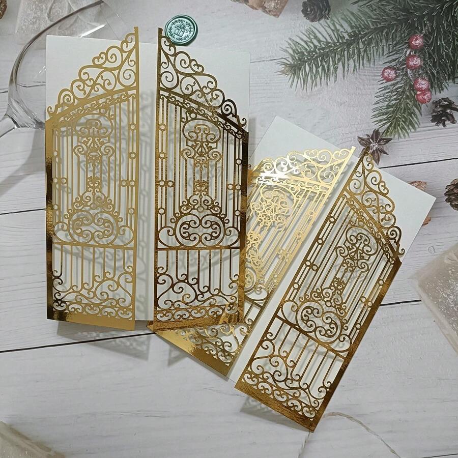 10pcs 5.1x7.1inch Gold Metallic Door Fold Laser Cut Invitation Cards For Wedding Party,Christmas