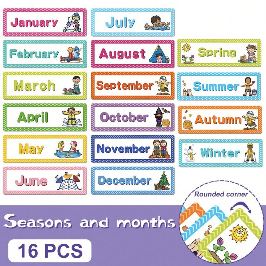 16PC English Week/Month Seasonal Word Card English Early Education Flash Card, Teaching Aids, (Week Card) Seasonal Card) Classroom Decoration, Commonly Used Word Cards, Erasable And Writable, Flash Cards, Puzzle (Some Accessories May Be Random)