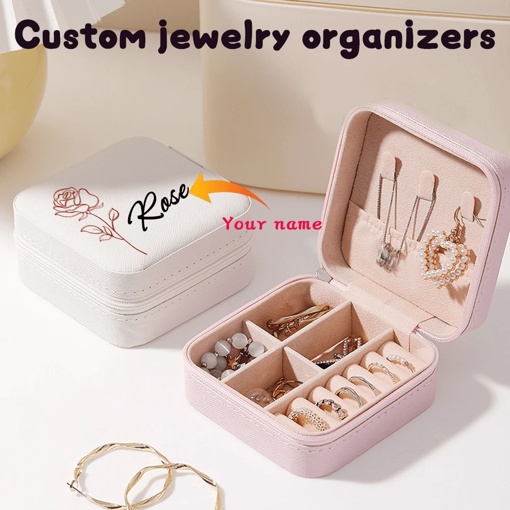 1pc Personalized Floral Jewelry Box, Square Leather Jewelry Travel Storage Case, Christmas Mom Gift, Bridesmaid Personalized Gift, Valentine's Day Gift, Gift For Her, Bridesmaid Gift