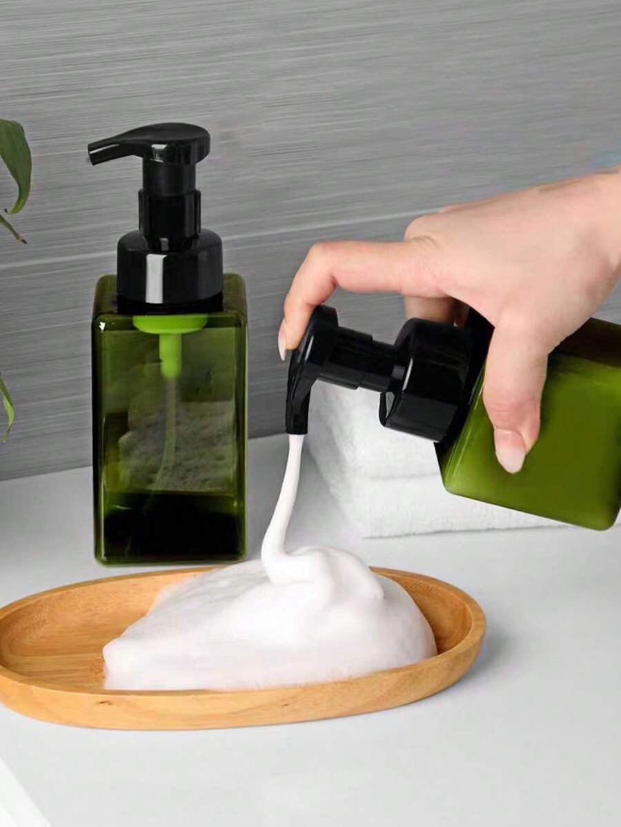 1pc/2pcs Square Plastic Pump Bottle, Bath Shower Gel Shampoo Storage Empty Bottle, Home Use Liquid Soap Foaming Dispenser, Facial Cleanser Foaming Pump Bottle