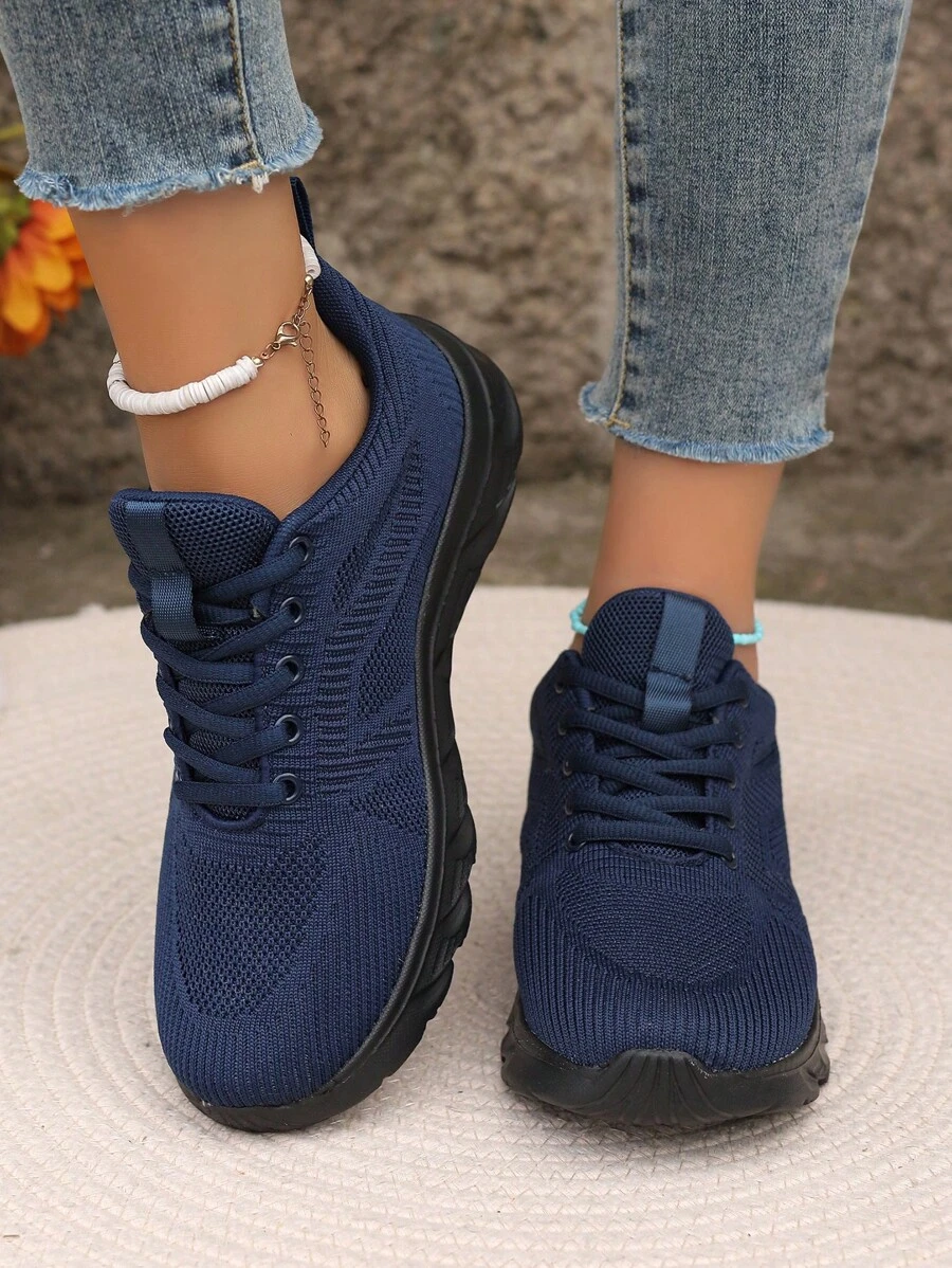 2023 New Breathable Lightweight Mesh Knit Simple Lace-Up Solid Color Non-Slip Washable Women Sports Shoes, Running Shoes, Walking Shoes, Road Running Shoes