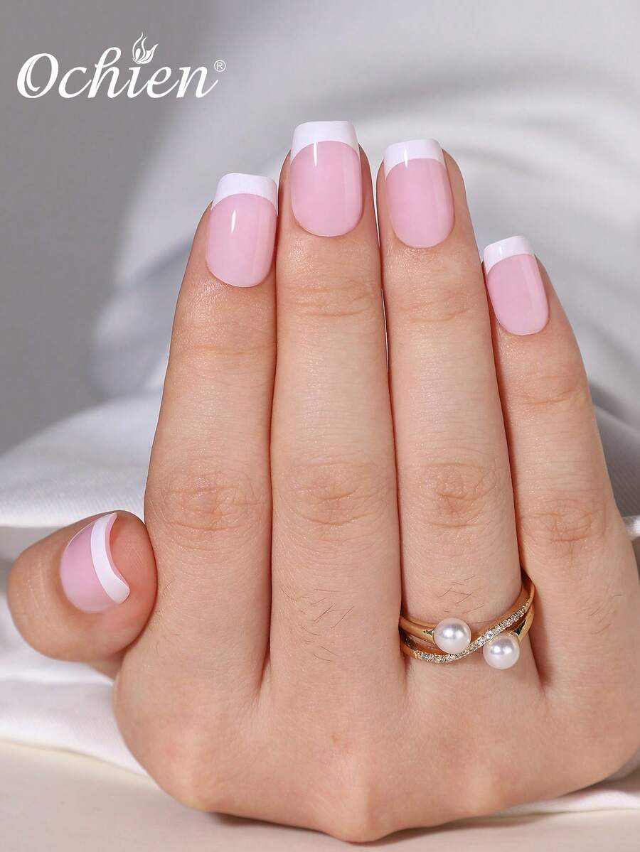 32pcs Short Square Press On Nails, UML- Classic White French False Nail Tips Set, Reusable Soft Gel Fake Nails With 2pcs Nail Buffer And File, Suitable For Women Daily Wear, Makes Your Day Sweet
