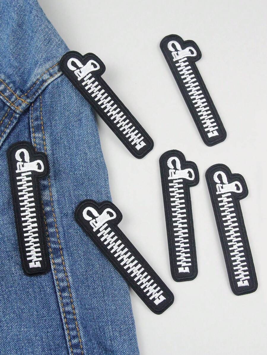 6pcs Zipper Design Iron-on Patch, Embroidered Polyester Patch For DIY Sewing