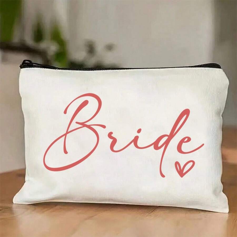 Bride Makeup Bag Wedding Cosmetic Pouch Bachelorette Party Bridesmaid Canvas Pouch Aesthetic Bride Zippered Make Up Bag Bridesmaid Proposal Gift