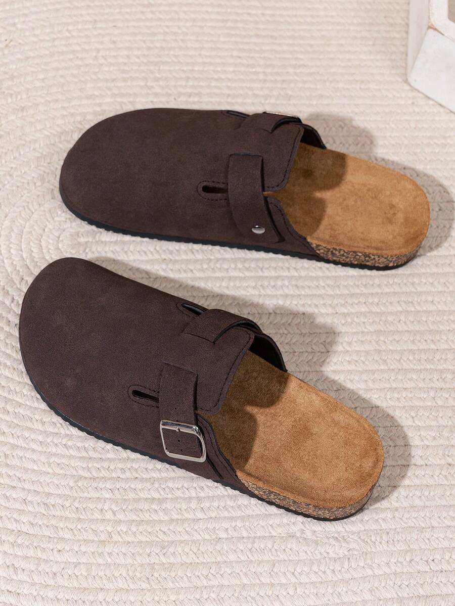 Men's Black Faux PU Leather Adjustable Strap Slippers With Gold-Tone Hardware, Comfortable For Indoor/Outdoor Wear, Round Toe With Rubber Sole, Suitable For Casual, Office, Beach And More Occasions