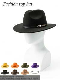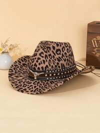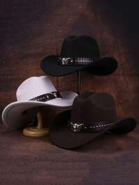 1pcMen's And Women's Universal Western Cowboy Hat, Decorated With Riveted Buffalo Leather Straps - 100% Polyester Fiber Hand-Woven Hat For Jazz, Formal Wear, Features Non-Elastic, Lightweight Design, Suitable For Outdoor Activities, Horseback Riding And Parties, Stage Performances, Birthdays, Parties, A Versatile Clothing Complement For Both Men And Women - Hat 1pc Men's And Women's Western Cowboy Hat, With Detachable Silver Bull Head Decoration Strap, Made Of Felt Material, Suitable For Daily Wear, Outdoor Leisure, Parties, Music Festivals, Cowboy Competitions, Bar Cowboys, Cycling, Etc.