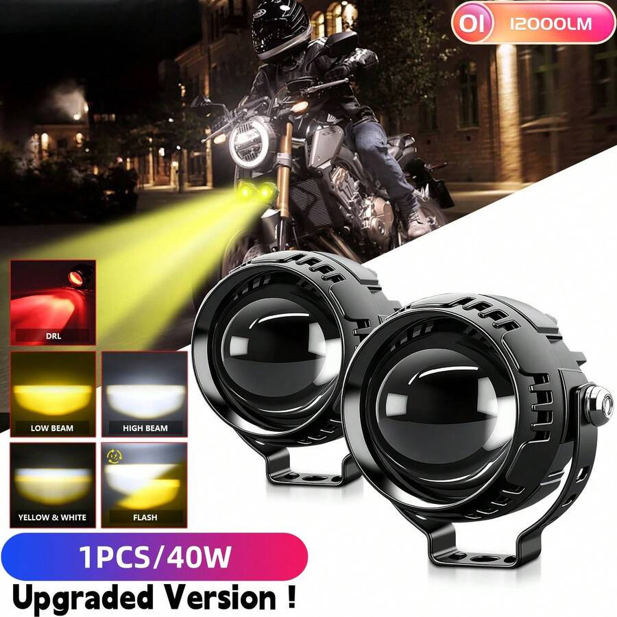 Multi-Mode Super Bright Dual Color LED Headlight With Extra Lens + Red Demon Eyes & Strobe Warning, For Motorcycle, SUV, Car, Off-Road Vehicles