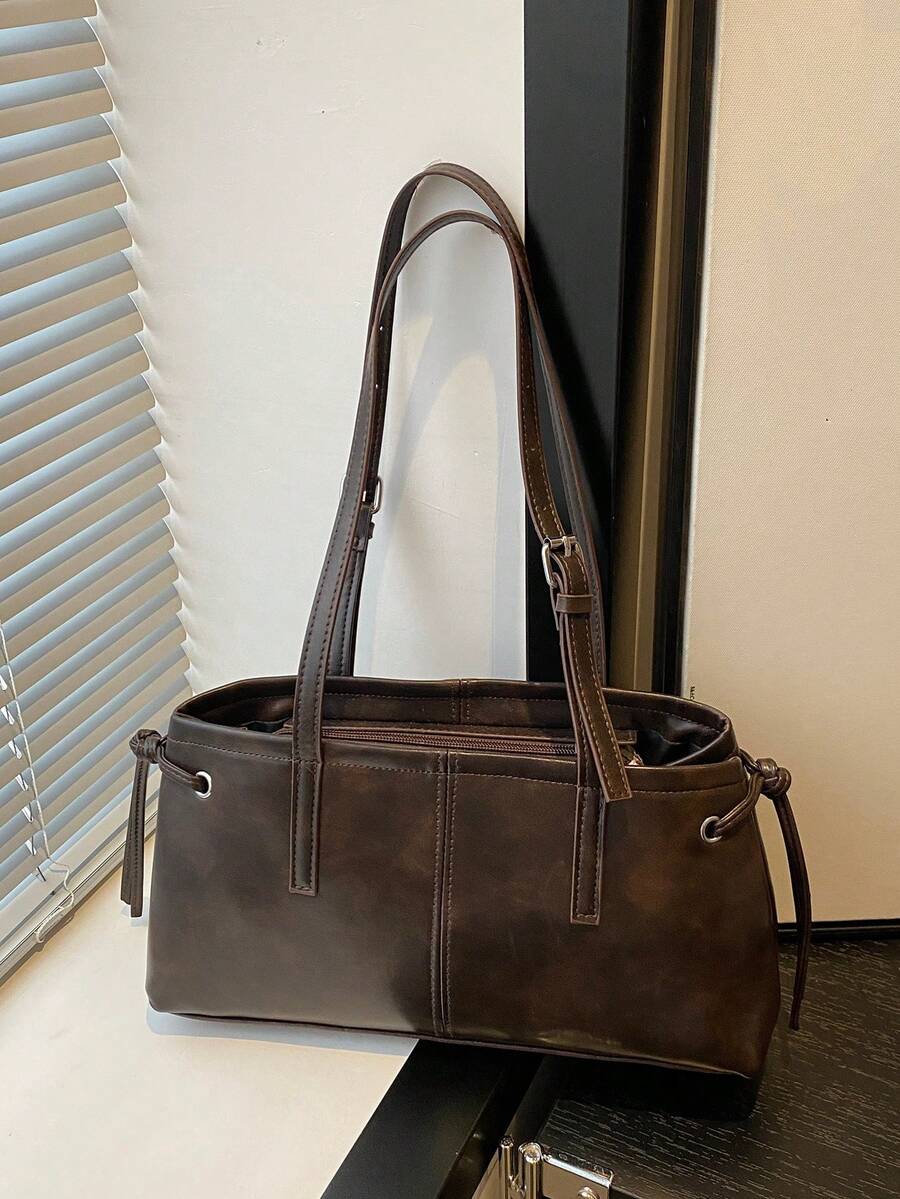 New Autumn And Winter Season Retro Fashion Solid Color Tote Bag With Zipper Opening, Lightweight And Minimalist Design, Large Capacity Single-Shoulder Tote Bag. Suitable For Women's Daily Life, Leisure, Commuting, Work, Vacation And Student Use.