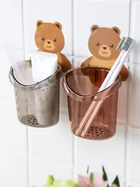 1pc Cute Animal Cartoon Bear Toothbrush Holder - Wall Mounted Plastic Toothbrush Organizer, No Power Required, No Drilling Required, Strong Adhesion, Cartoon Double Bracket, With Mirror/Glass/Wall Mounted Suction Cup Bathroom Organizer Accessories And Decorations Polar Bear Cartoon Chicken Bear Toothbrush Holder With Suction Cup Creative Bathroom Organizer, Bathroom Toothbrush And Accessories Organizer, Suitable For Home, Plastic, Multiple Colors Available, Perfect For Bathroom Organization 1/2pcs Anti-Slip Striped Toothbrush Holder, Portable Nordic Toothbrush Storage Box, Dustproof Toothbrush Cover, Toothbrush Case, Suitable For Home Daily Use And Business Travel, Outdoor Travel And Camping, Bathroom Decor, Back To School, Summer Travel Accessories, Bathroom Gadgets, Bathroom Accessories, Home Supplies, Personal Care Organizer #9 Bestseller