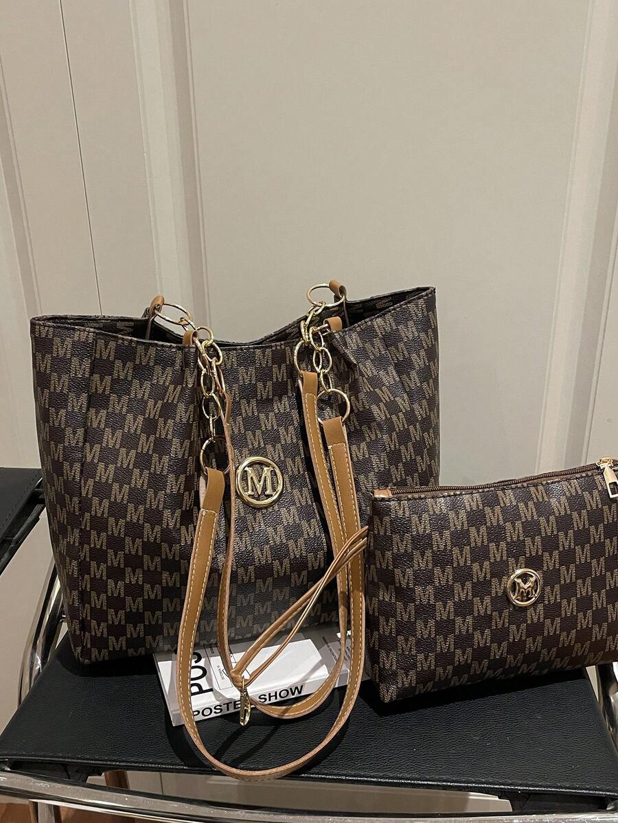 Two Pieces New Arrivals: A Large-Capacity M-Letter Printed Tote Bag With Double Handles, Perfect For Commuting To Work Or Campus Use. This Spacious Yet Lightweight Tote Bag Combines Classic Casual And Business-Casual Styles. Ideal For Young Women, College Students, And Professionals, It Seamlessly Adapts To Work Environments, Back-To-School Season, Middle/High School/University Life, And Holiday Travel. A Fashionable Zipper Tote Bag.