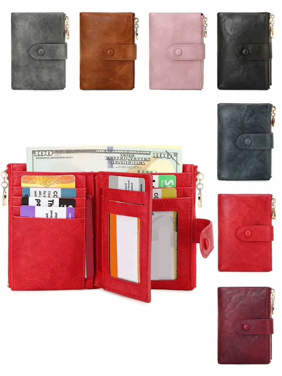 MIYIN Vintage Wallet With Button Closure Business Casual Multiple Card Slots Coin Portable Three-Fold Design Short Wallet Retro Style Zipper Wallet Stylish Button Closure Women's Wallet For Daily Outings Shopping For Women Wallet Purse Wallet Small Wallet