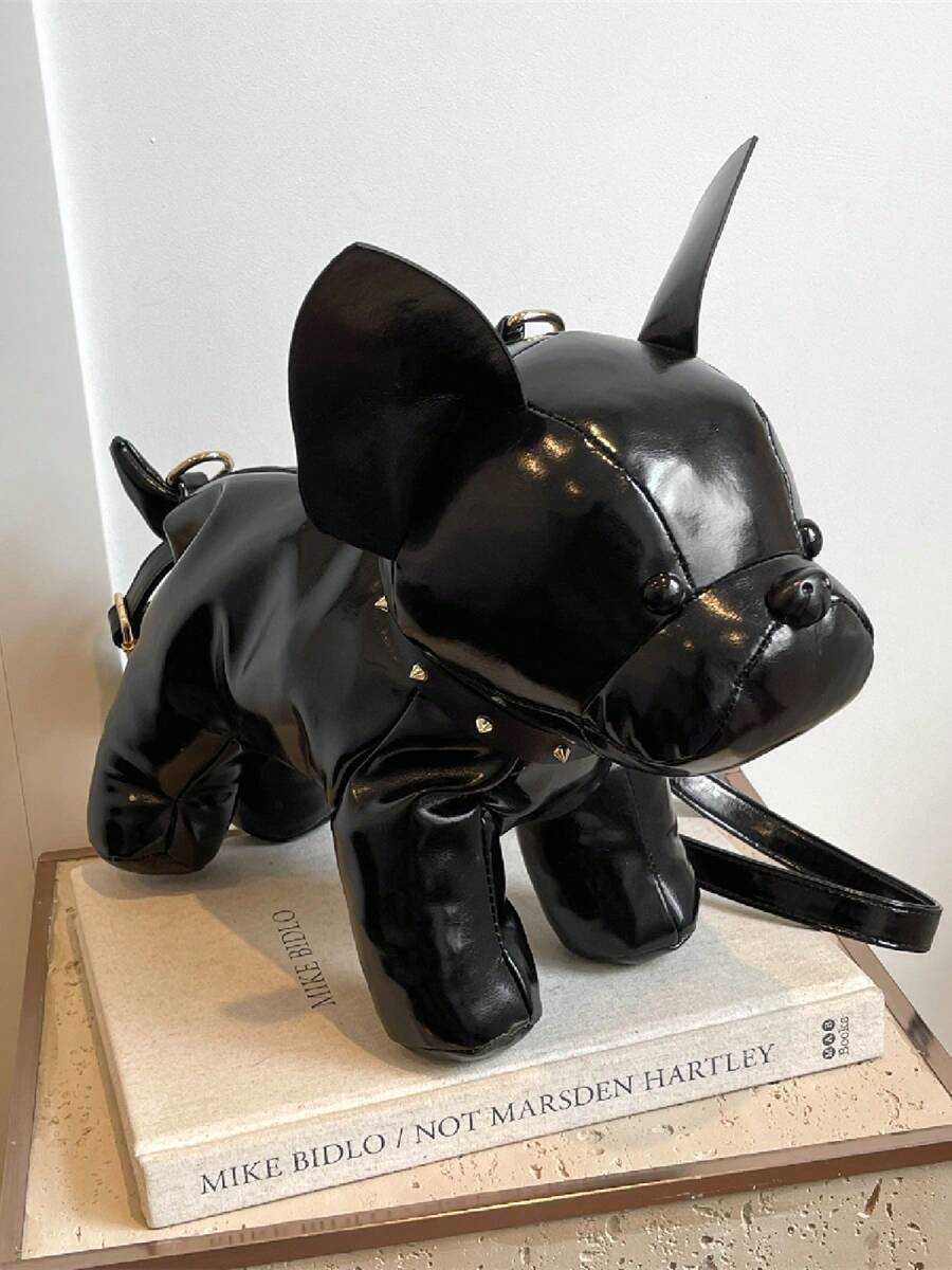 Women's Fashion French Bulldog Cartoon Handbag, With Unique Collar Decoration, Can Be Worn As Shoulder/Crossbody Bag