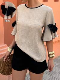 FrancliaFranclia Women's Elegant Round Neck, Fitted Waist, Pleated Short Sleeve, Versatile Solid Color Light Apricot Shirt; High-Quality Satin Satin Fabric Shirt; White Satin Short Sleeve Shirt; White Shirt With Pleated Waist.Summer ,Summer Holiday Outfits,Spring, Spring Outfit Women, Valentine's Day,Valentines Day Outfit,Carnival,Carnival Women,Beach,Wedding,Birthday,Birthday Dress,Gym,Going Out, Elegant,Vacation,Casual,Y2k,Graduation Season Attire, Fashionable Casual Commuter Wear, Business Office Wear, Versatile And Stylish Everyday Casual Wear, Urban Teacher's Professional Attire