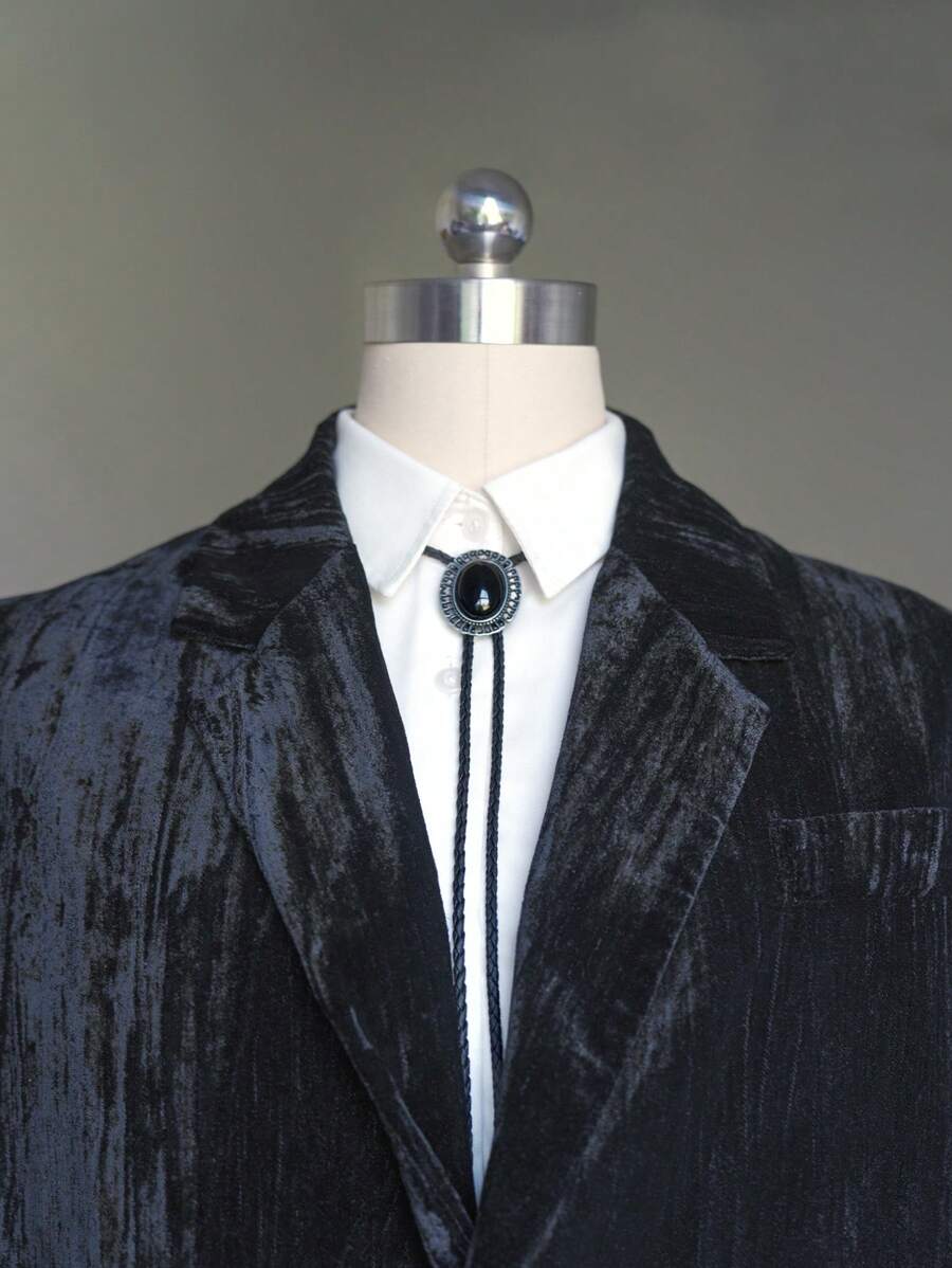 pooting bear 1pc Western Cowboy Style Vintage Black Onyx Bolo Tie, Fashionable Unisex Necktie With Decorative Clasp And Long Chain Street,School